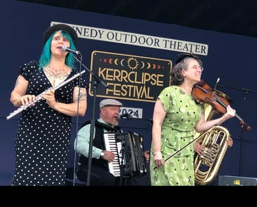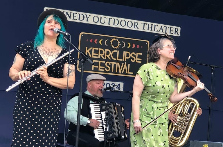 Festivals: Kerrville Folk Festival, HONK! TX (2014–2023), San Antonio International Accordion Festival, Cotati accordion festival, Burningman event, Pecan Street Festival (Austin, TX), Burning Man Festival